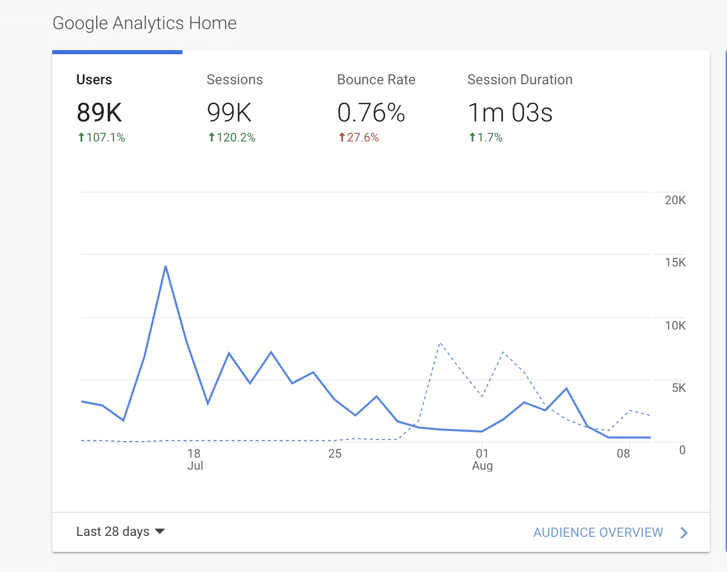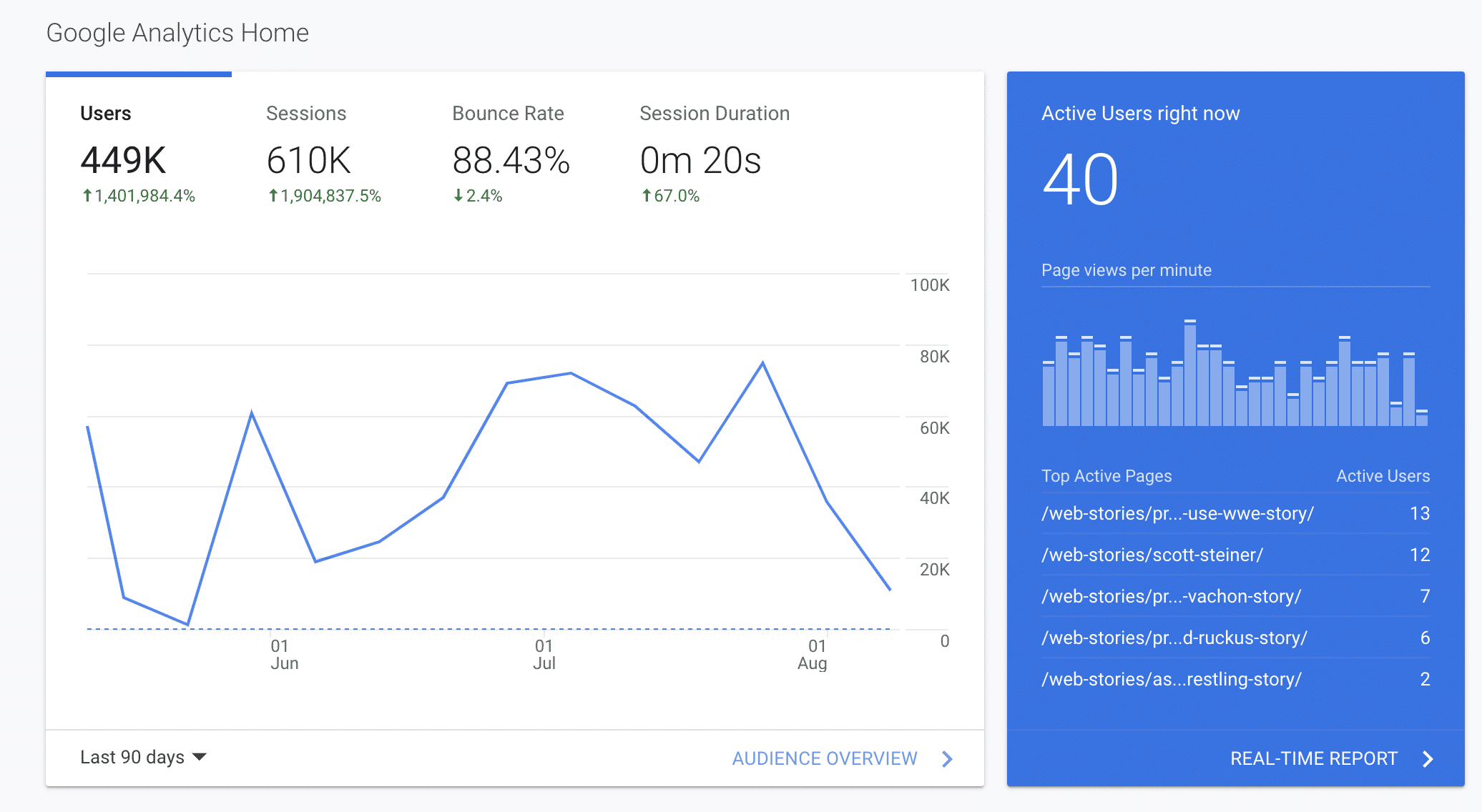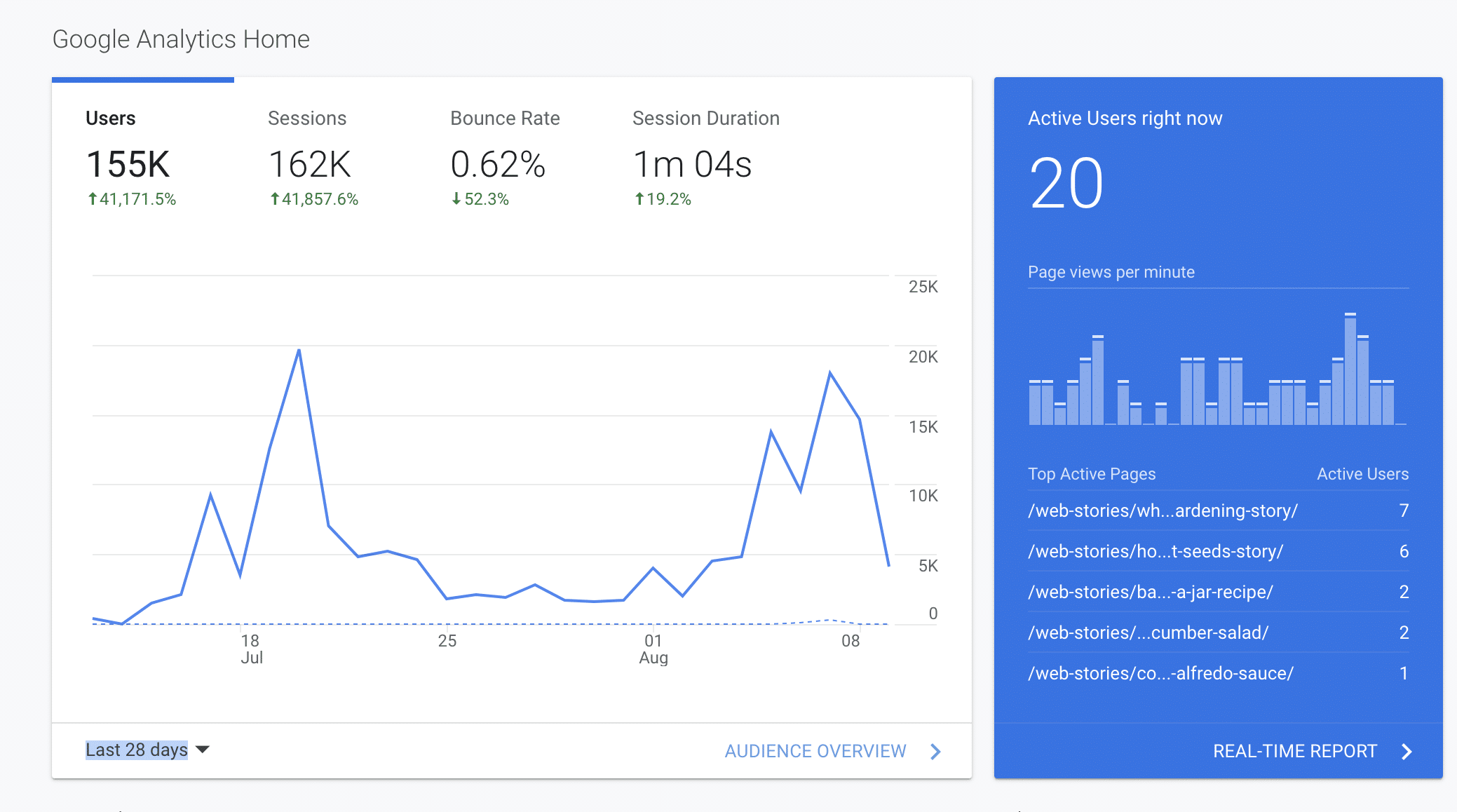 - One client saw a 45% increase in Google Search Traffic within 30 days of beginning Web Stories.